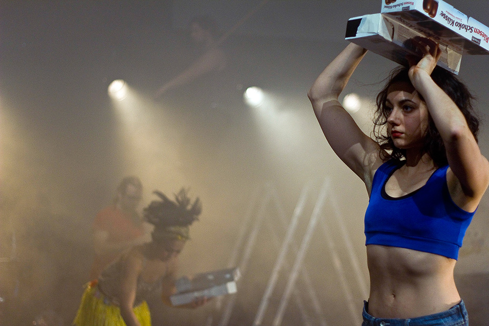 Wenn man den Saal betritt, ist man augenblicklich mittendrin [...] Von einer spektakulären Performance [...] geht es zur trostlosen Gegenwart. Die Akteure hocken nach ihrem Einkommen gestaffelt in einer Stuhlreihe und berichten da- von, mit wie wenig Geld sie über die Runden kommen müssen. Nichtsdestotrotz steigert sich die Gruppe in eine grandiose, energiegeladene Tanzperformance, in der das Ensemble zur Höchstform auf- läuft und eine mitreißende Lebensfreude ausstrahlt. ...überzeugt diese Aufführung [...] durch originelle Ideen, kraftvolle Tanzperformances, dynamische Live-Musik und überzeugende Darsteller.
